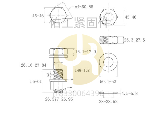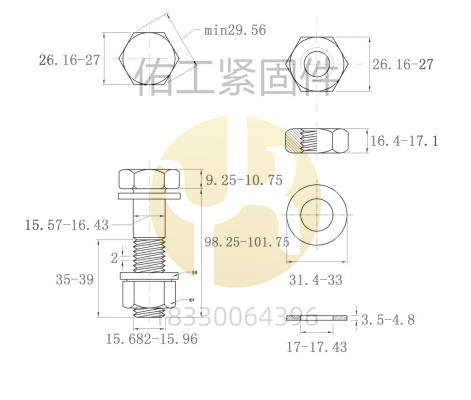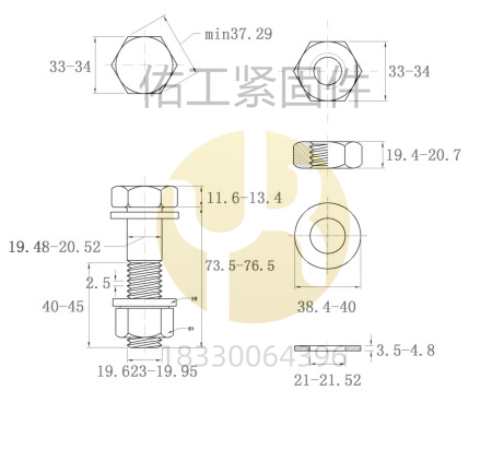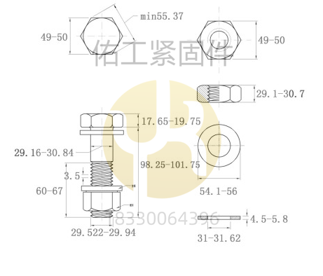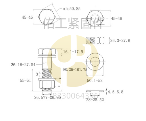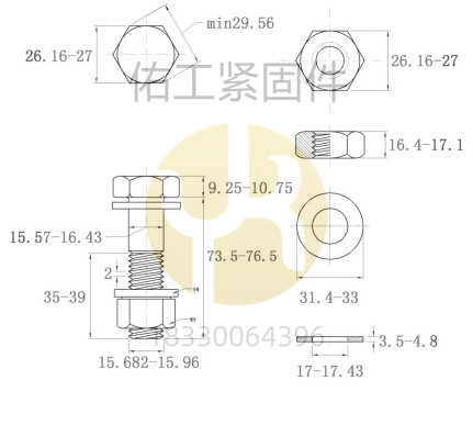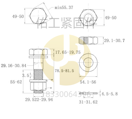 GB1228-1230鋼結(jié)構(gòu)大六角螺栓10.9S部分規(guī)格及尺寸